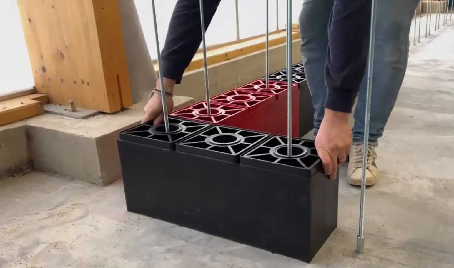 Cada uno de los ladrillos de Blockto tiene un peso de 3,5 kilogramos y se pueden cortar fácilmente para hacer un bloque de 40 centímetros o dos bloques de 20 centímetros. Una de sus principales ventajas es que se pueden montar y desmontar para volverlos a utilizar. Para ello, se pueden anidar y ensamblar sin necesidad de mortero, lo que hace que todo el proceso de construcción sea realmente cómodo. Solamente hace falta introducirlos por tres barras, encajarlos y apilarlos.
